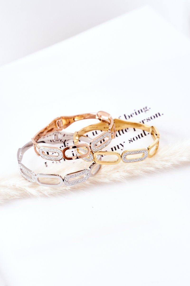 Tērauda rokassprādze ar spīdīgām acīm zelta krāsā