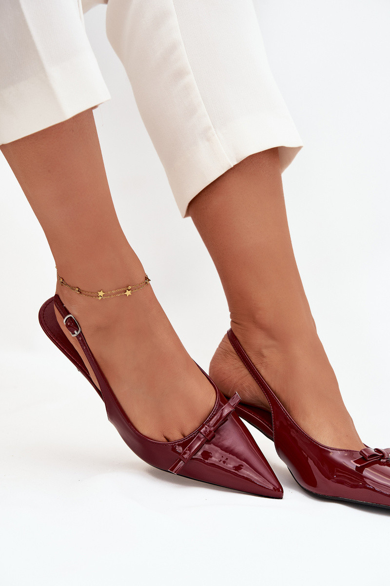 Lakuoti apavi ar plāniem papēžiem un lentītēm bordo krāsā Olvena