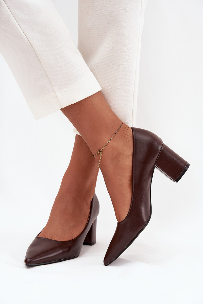 Sieviešu smailās kurpes „Ryvessa" uz pīlāra papēža, šokolādes krāsā