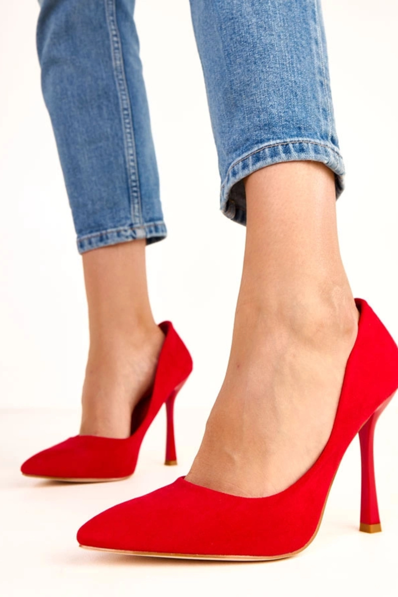 Sarkanas augstpapēžu kurpes no mākslīgās zamšas Alexa