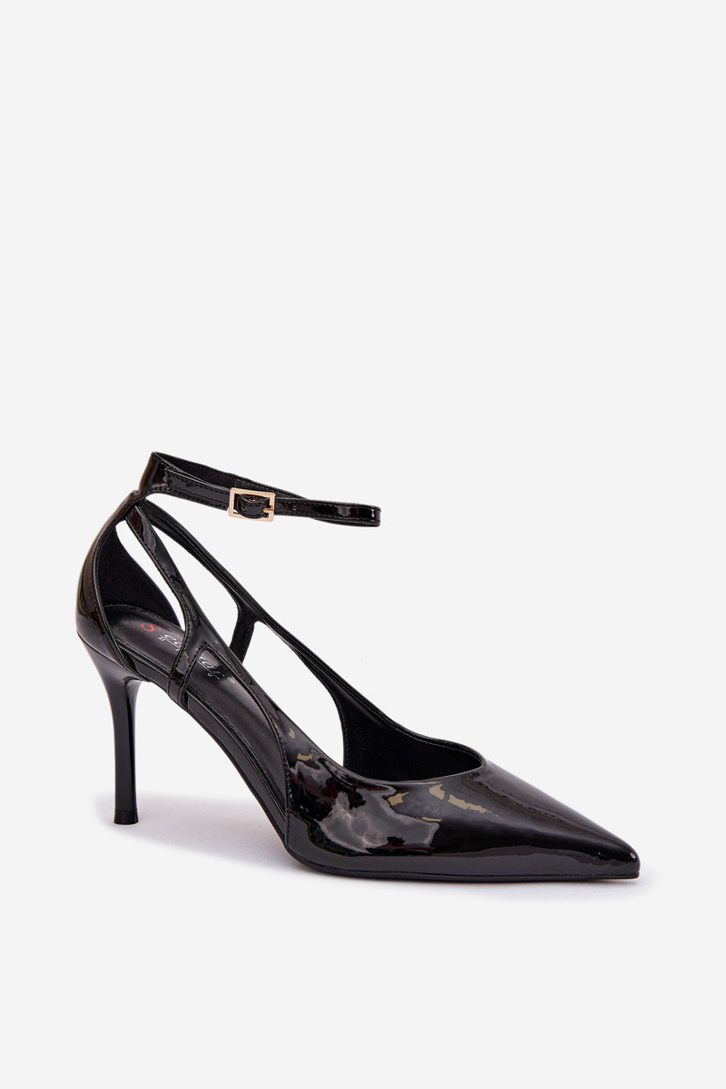Lakuoti augstpapēžu apavi no mākslīgās ādas, melnas krāsas Fionnel