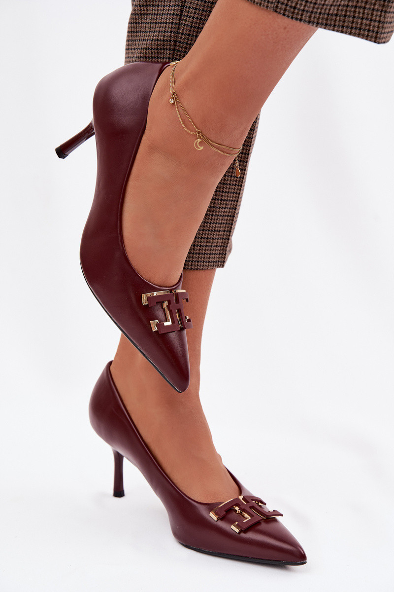 augstpapēžu kurpes Kurpes ar ornamentiem Eko Āda bordo krāsas Fivara