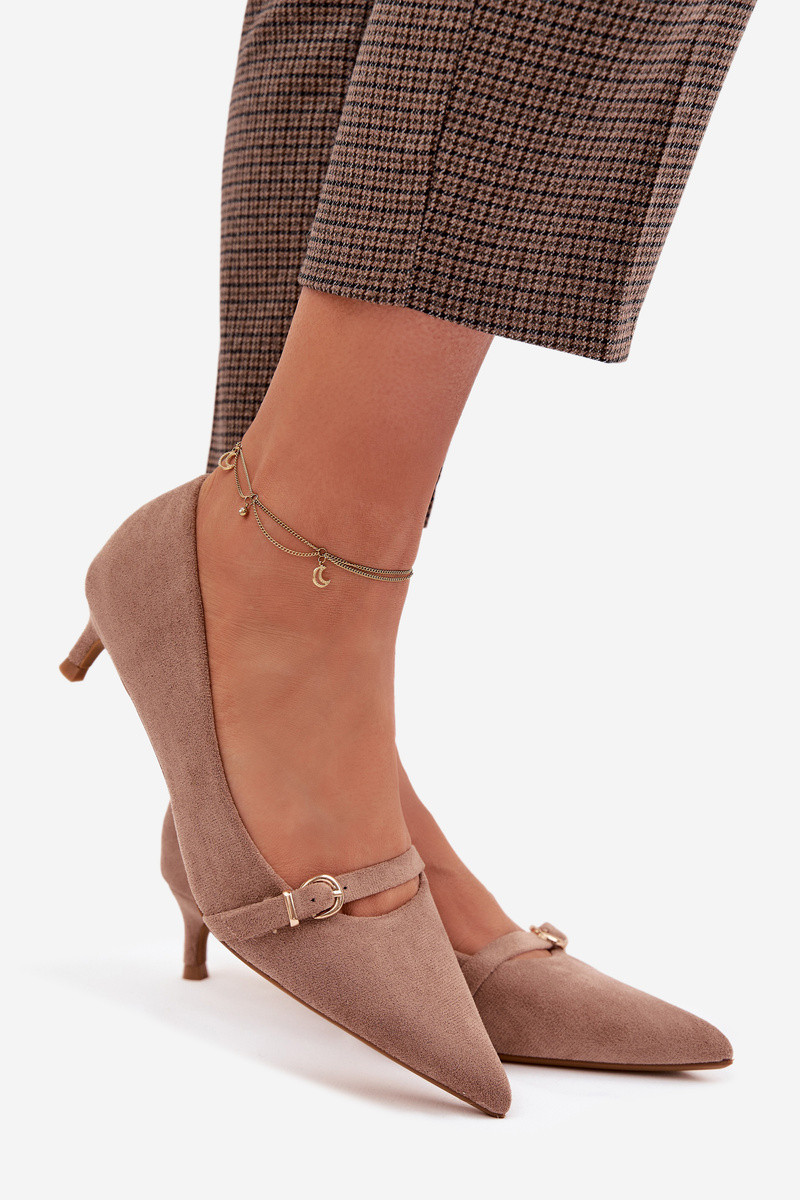 Kurpes Sieviešu Uz Zema Papēža ar dekorētiem papēžiem smilšu krāsas Pirela