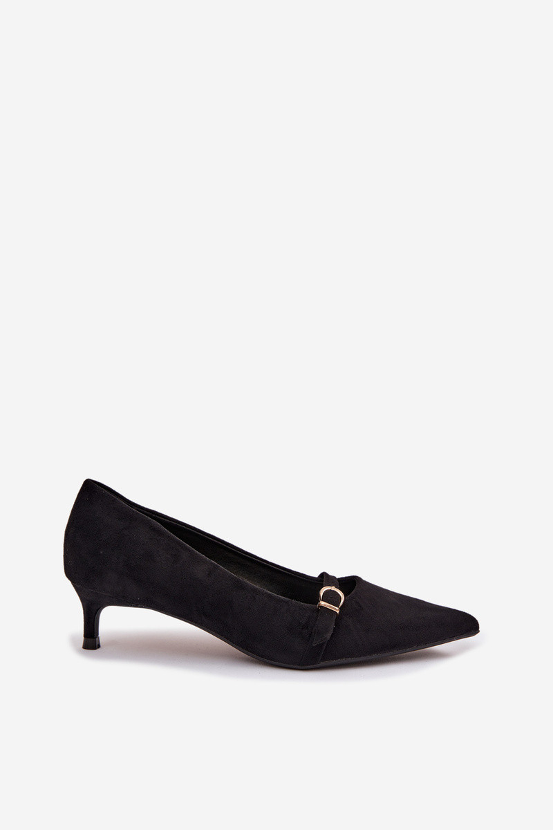 Sieviešu apavi ar zemu papēdi un dekorētiem papēžiem, melnā krāsā Pirela