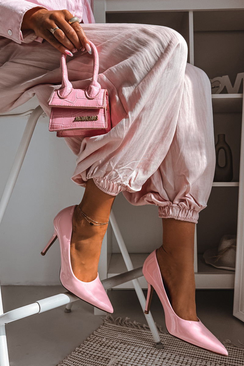 Klasiskie lakoti augstpapēžu zābaki rozā krāsā mākslīgā āda Odira