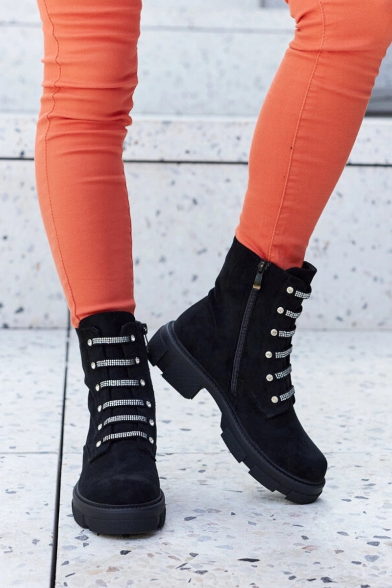 Melni potītes zābaki ar cirkonijiem, izolēti mākslīgā zamša Sfaranda