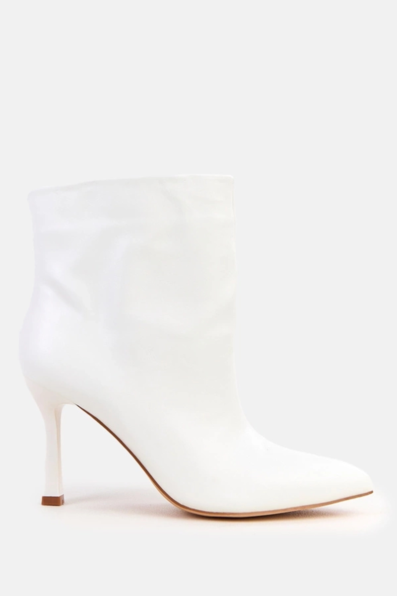 Baltie ievelkamie zābaki no ekoloģiskas ādas uz augsta papēža Laursa
