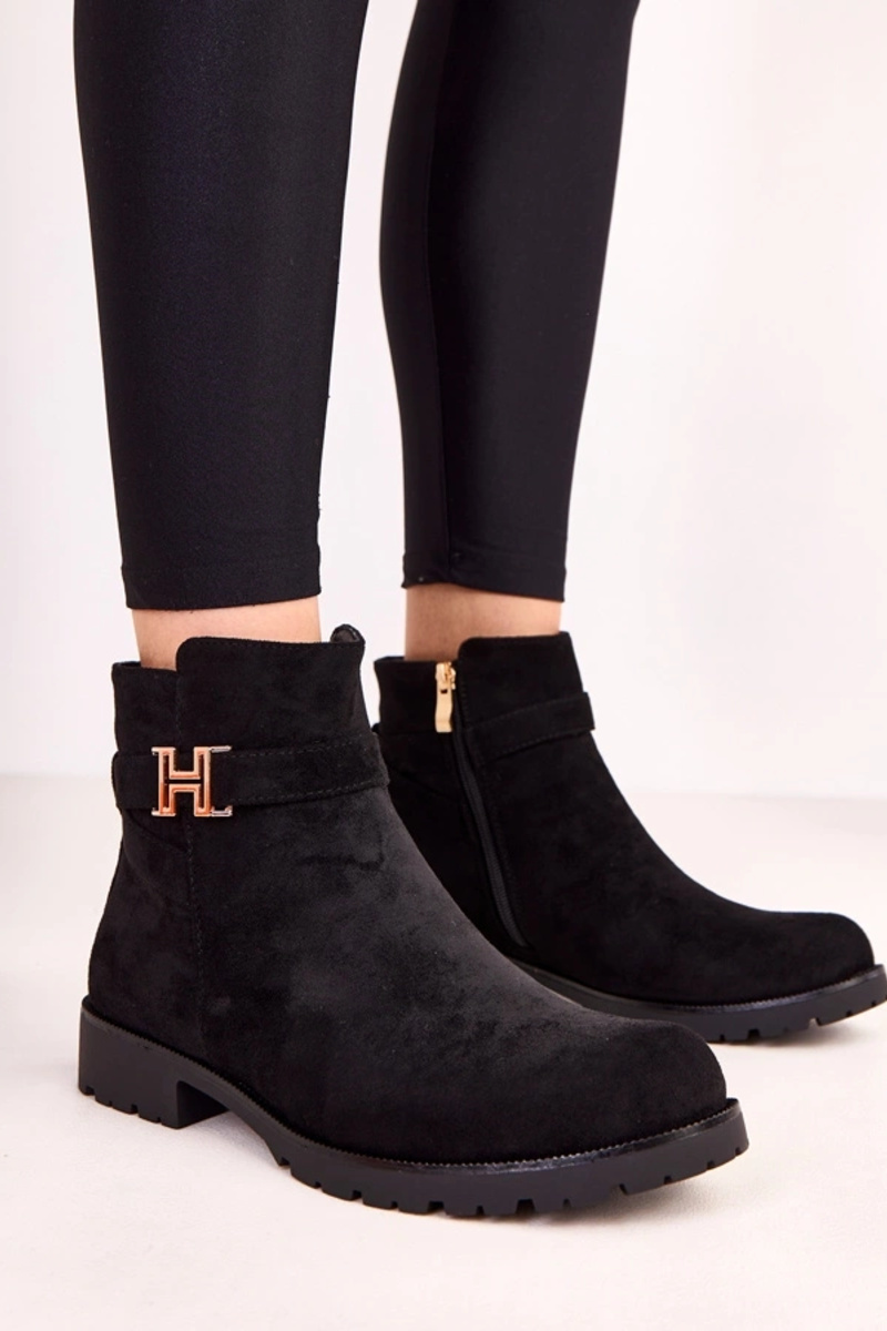 Melni sieviešu zābaki ar zelta krāsas rotājumiem Mengel
