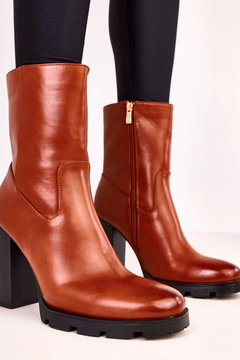 Brūni sieviešu zābaki uz bieza papēža Wendora