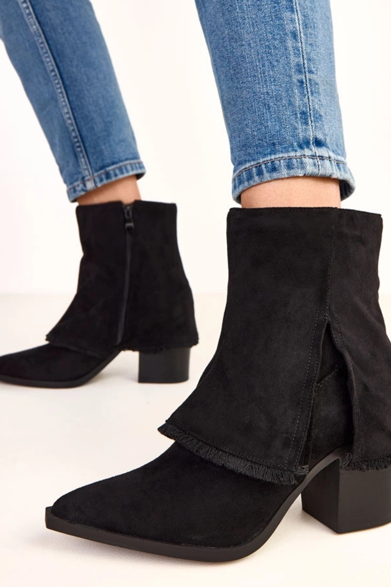 Melnās zābaciņas uz papēža ar nolokāmu kāju Felicia