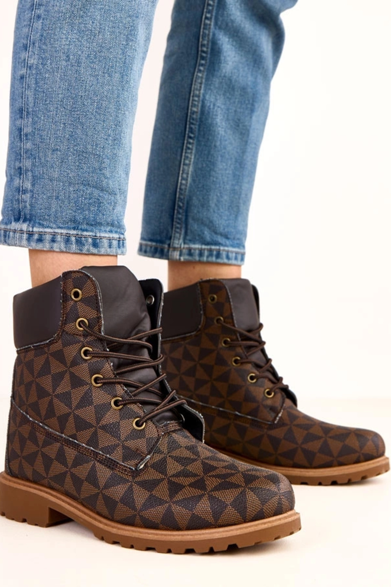 Melnbrūnas darba kurpes ar ģeometrisku rakstu Alicia