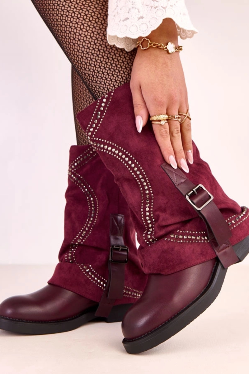 Bordo krāsas zābaki ar atvērtu papēdi, rotāti ar cirkoniem Ginny