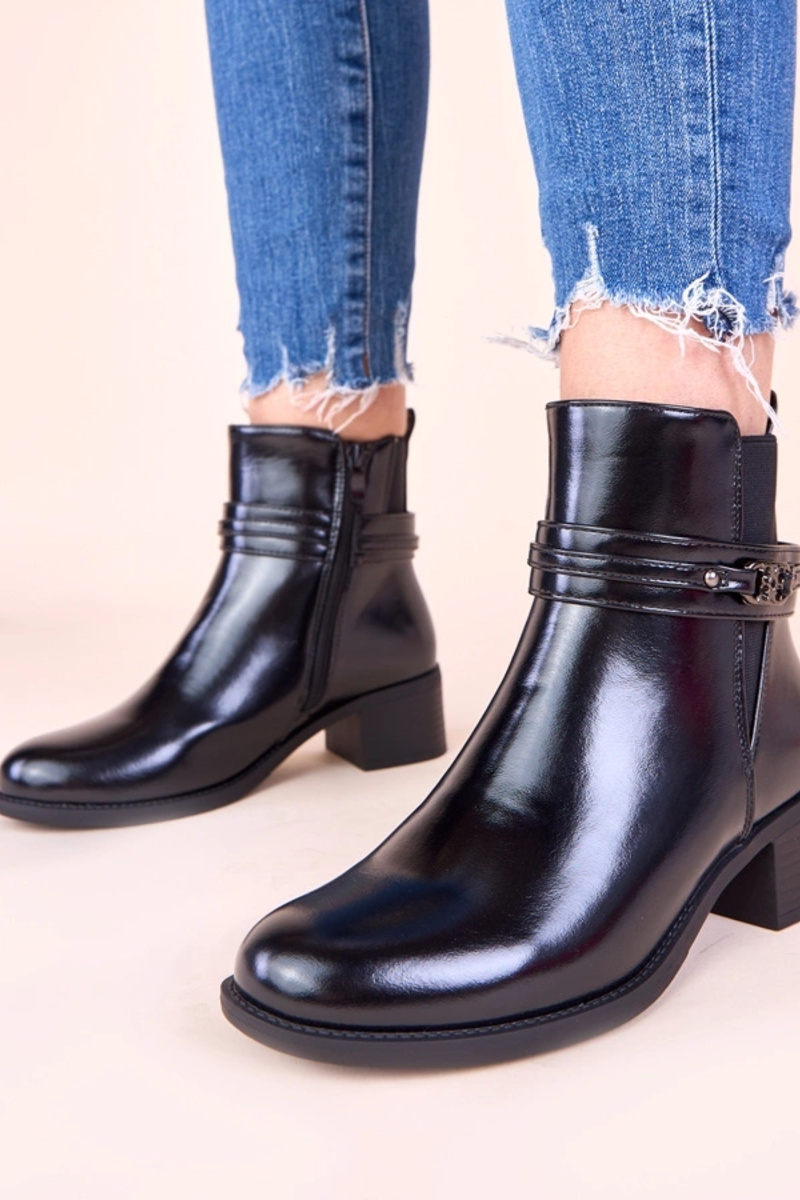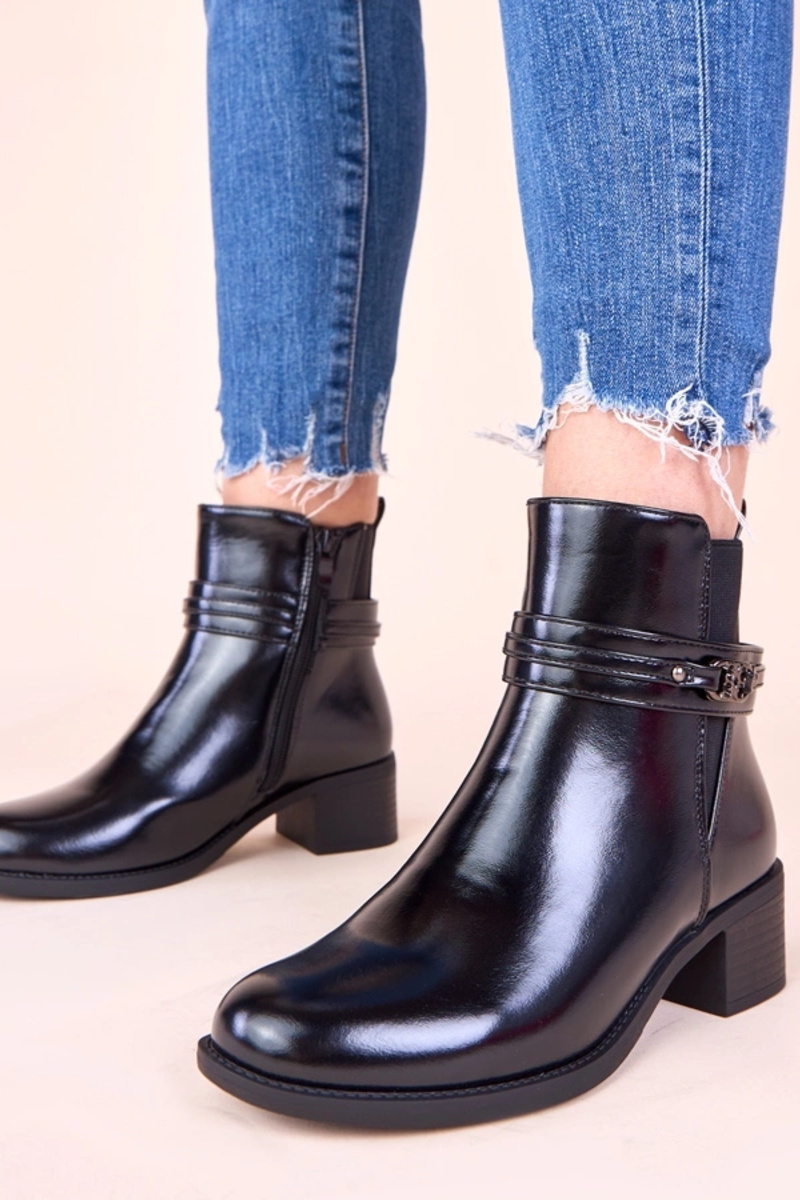Melnas aulinītes uz stabiņa ar dekoratīvu siksniņu Lilua