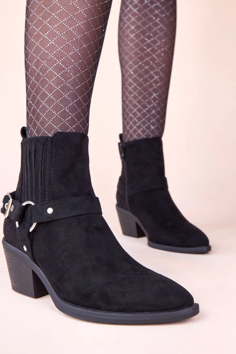 Melnas aulinītes uz stabiņa ar dekoratīvām sprādzēm Ritama
