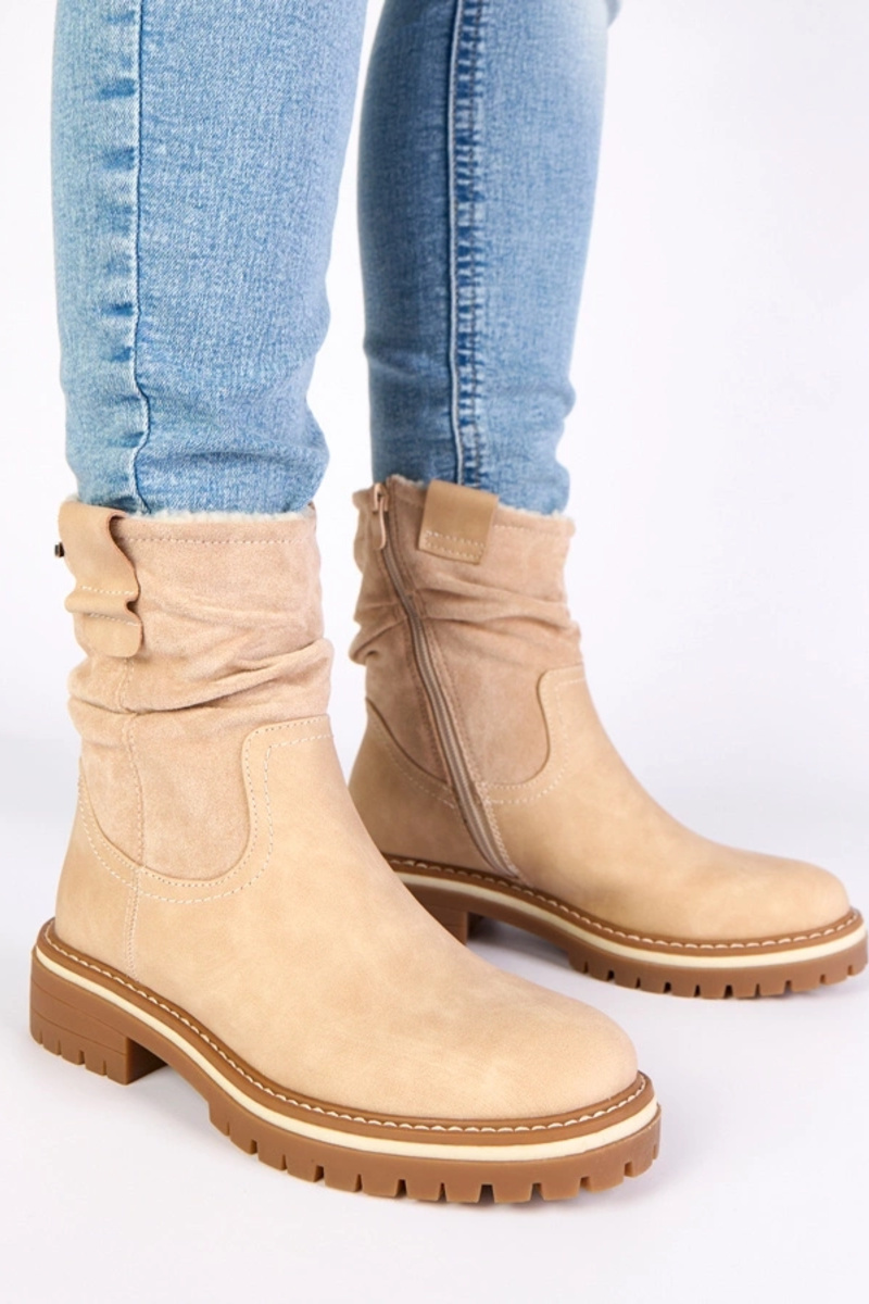 Smilškrāsas silti zābaciņi ar krokotu augšu Lovisa
