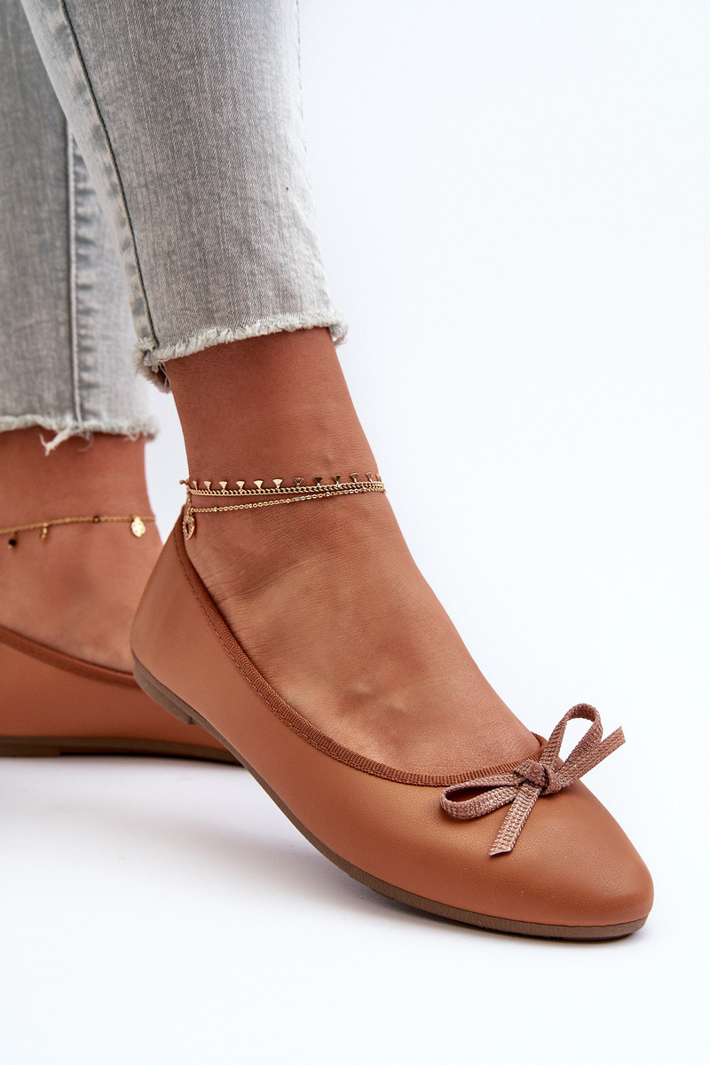 Balerīnas no mākslīgās ādas ar lentēm brūnā krāsā Sandelal