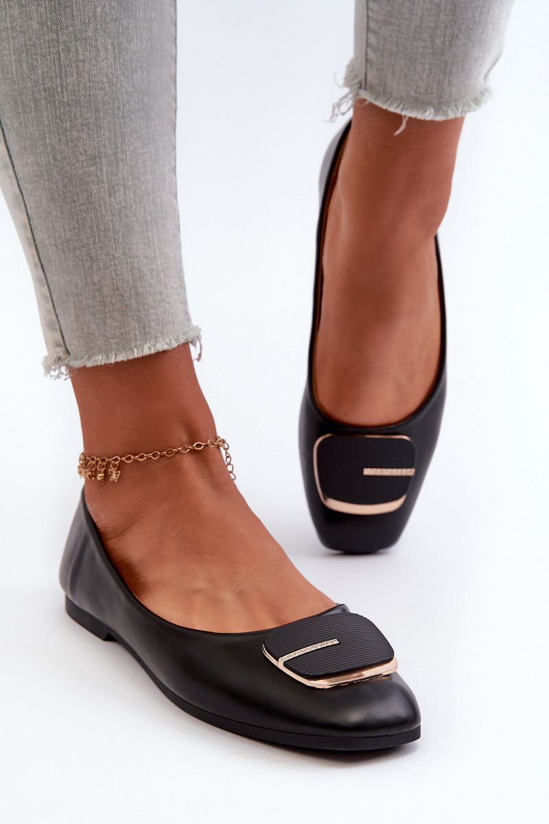 Sieviešu melnas balerīnas no mākslīgās ādas ar ornamentiem Edoslli