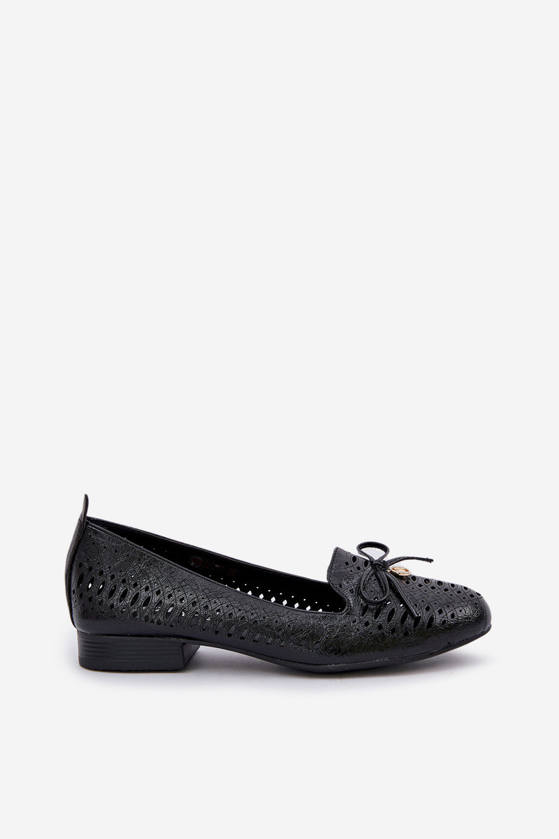 Ažūrētas balerīnas ar lentītēm no mākslīgās ādas melnā krāsā Amepitrea ar lakas efektu