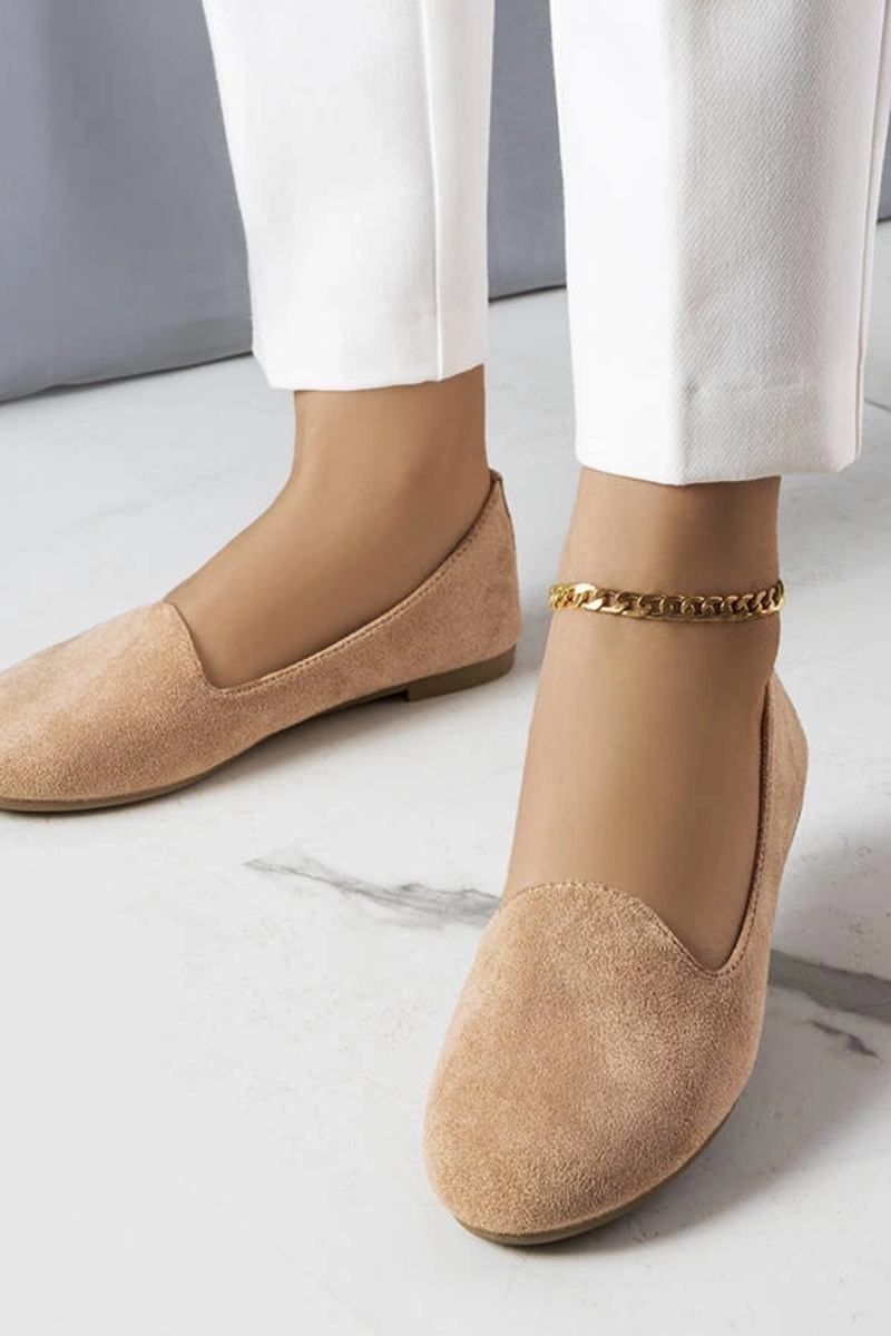Smilšu krāsas mākslīgās zamšādas baleta apavi Marion