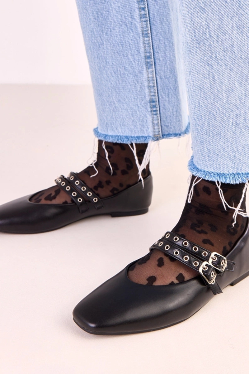 Melnu krāsu Alfira balerīnas ar kvadrātveida purngalu un sprādzēm
