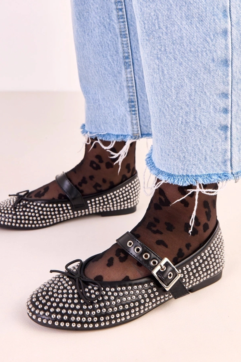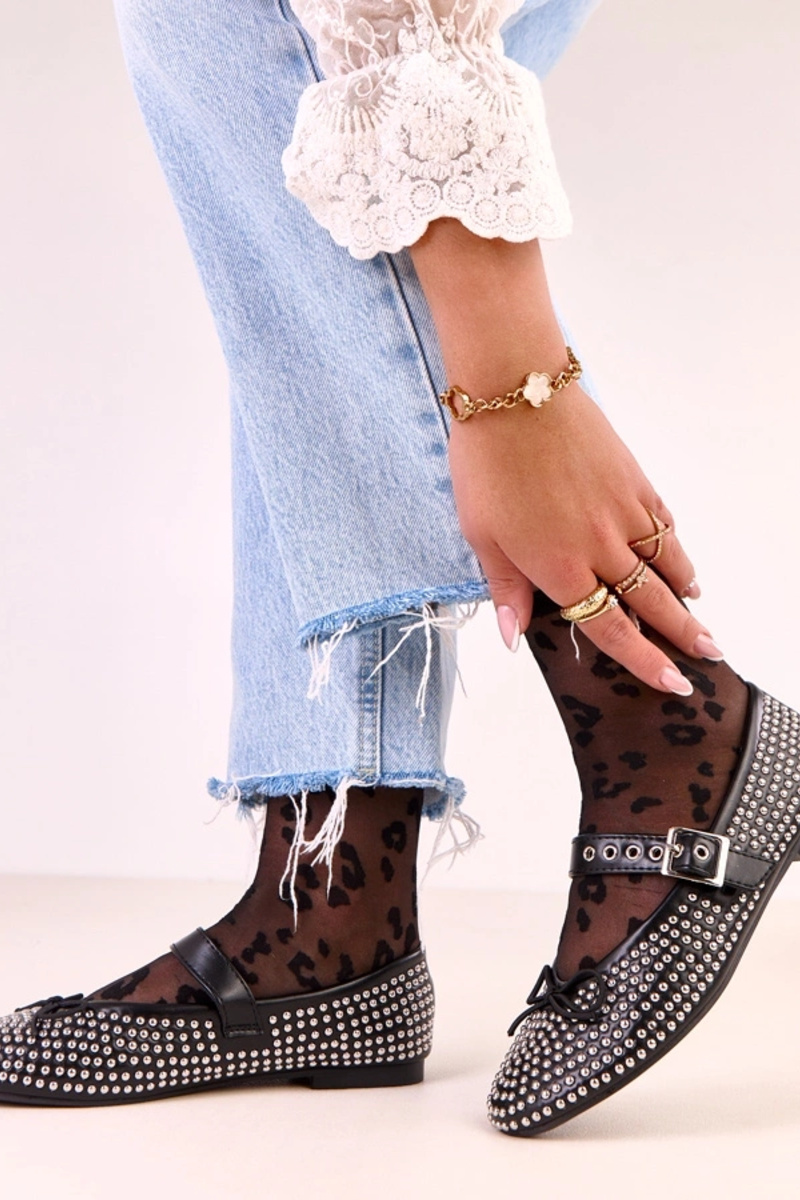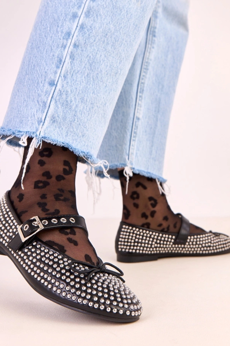Melnu krāsu Mylie balerīnas, dekorētas ar kniedēm un lentu
