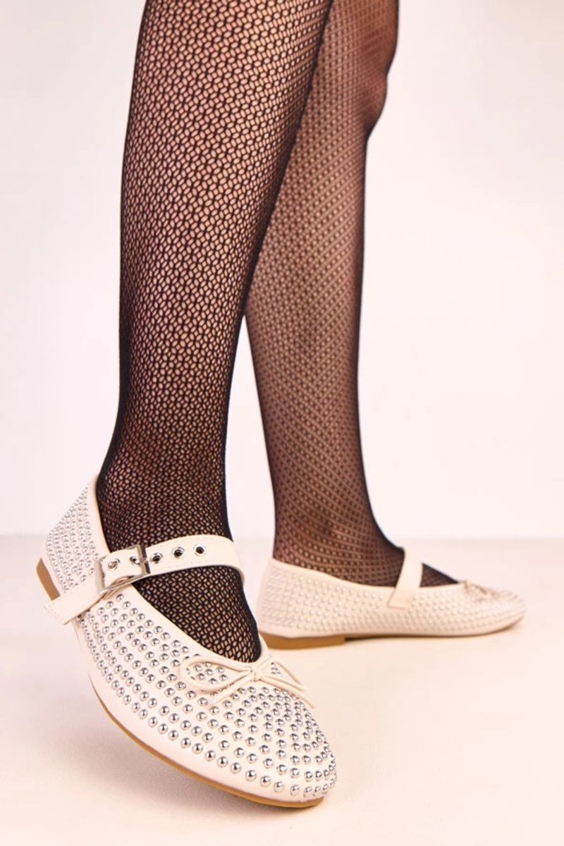 Smilšu krāsas balerīnas rotātas ar kniedēm un lentīti Mylie