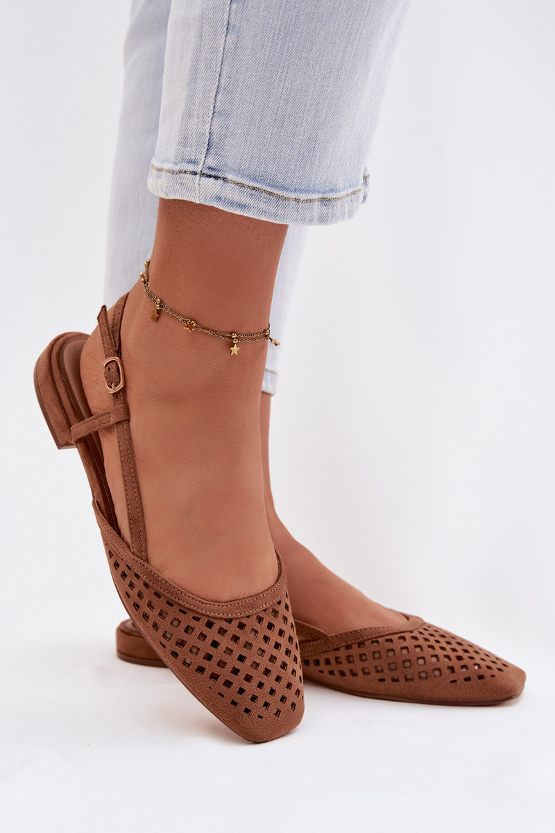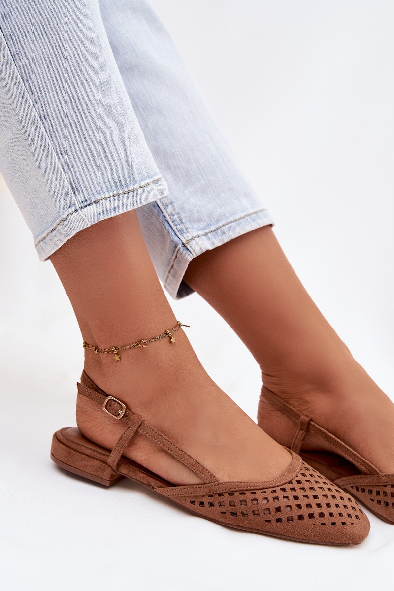 Ažūru balerīnas no mākslīgās zamšas brūnas krāsā Farivelle