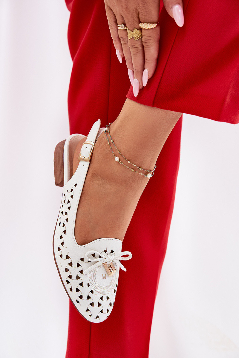 Ažūras balerīnas ar atvērtu papēdi baltā krāsā
