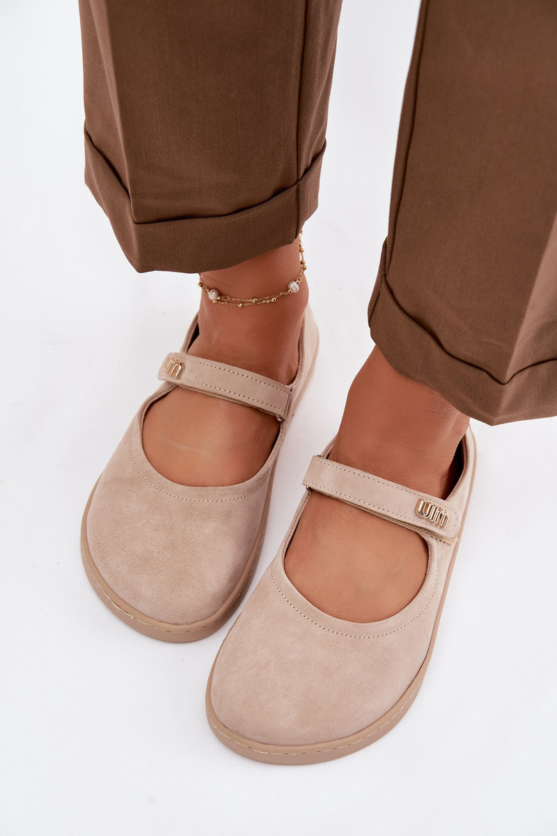 ZazooĀdas zamša balerīnas Barefoot ar siksniņām Zazoo 10206 smilšu krāsā