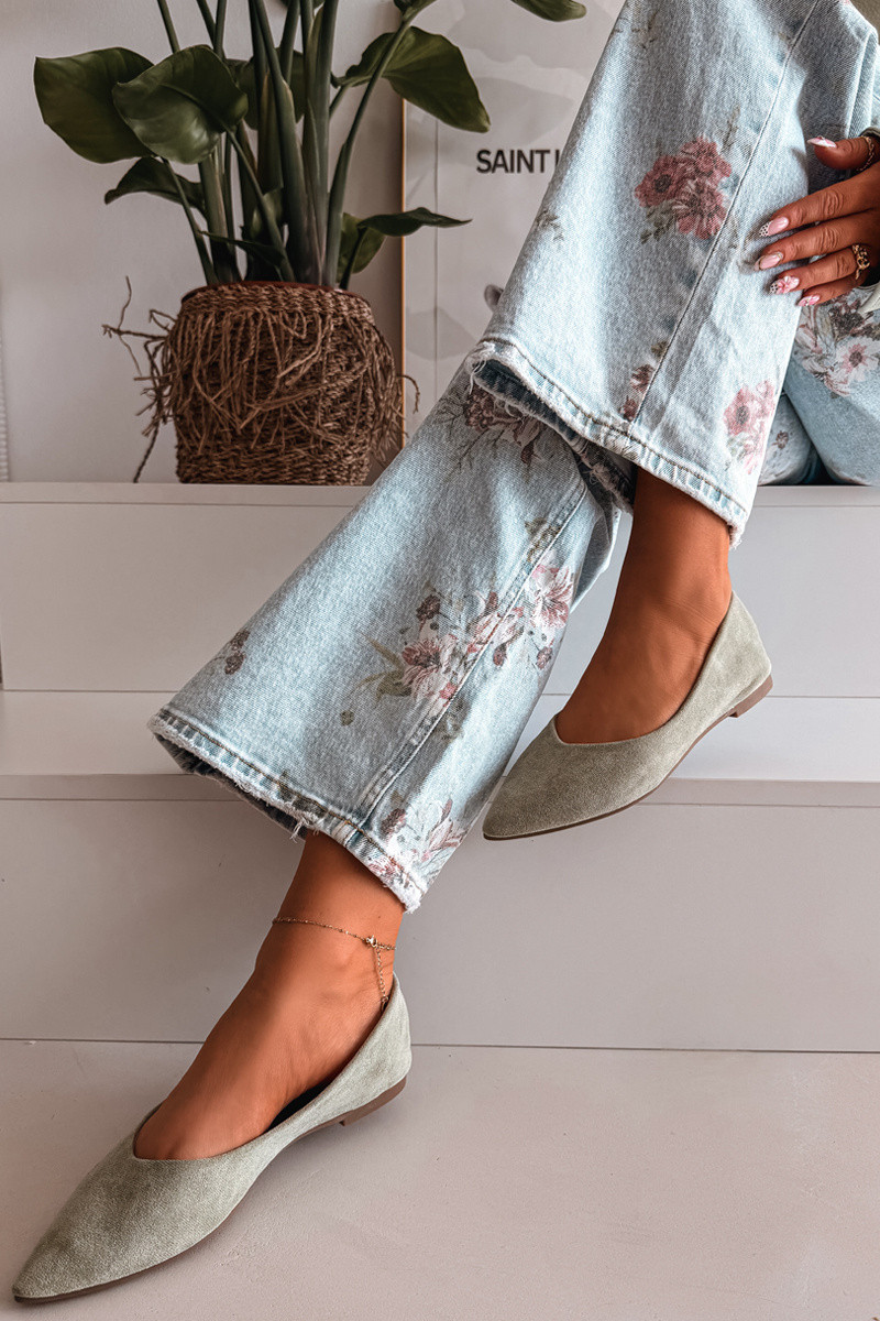 Balerīnas zempapēžuEko zamšādau Zaļas krāsas Lelisa