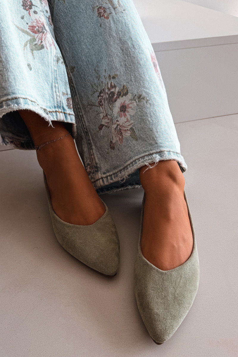 Lelisa balerīnas plakanas no mākslīgā zamša zaļā krāsā