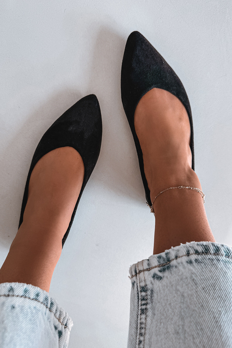 Lelisa balerīnas plakanas no mākslīgā zamša melnā krāsā