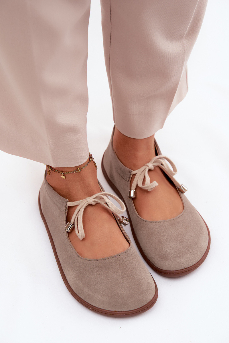 Āda Zamšādas balerīnas Barefoot šņorējami Zazoo 021 Cappuccino