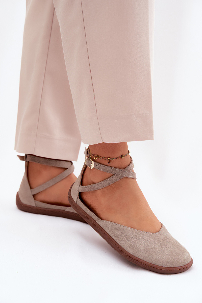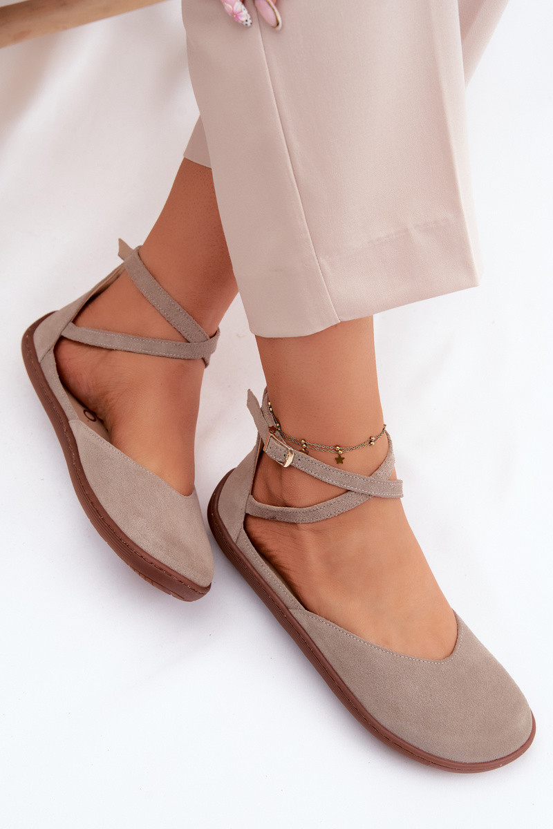 Mākslīgās zamšādas sieviešu ballerīnas ar siksniņām Zazoo 320 kapučīna krāsā