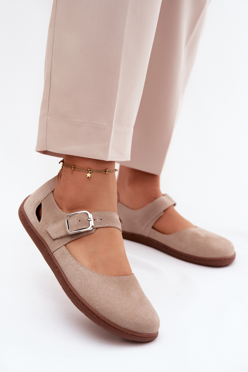 Mākslīgās zamšādas ballerīnas ar siksniņām Zazoo N1319 smilšu krāsā