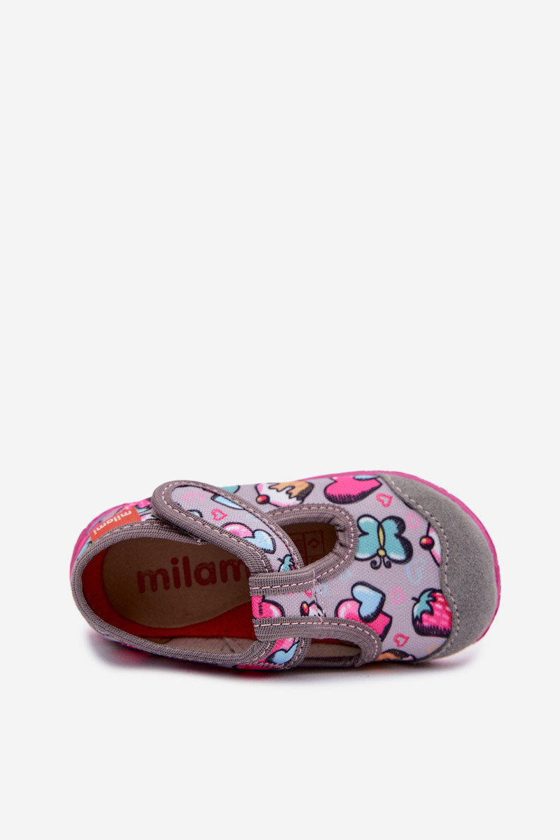 Bērnu šlepes Milami ar lipīgiem aizdariem pelēkā krāsā Jasimrra