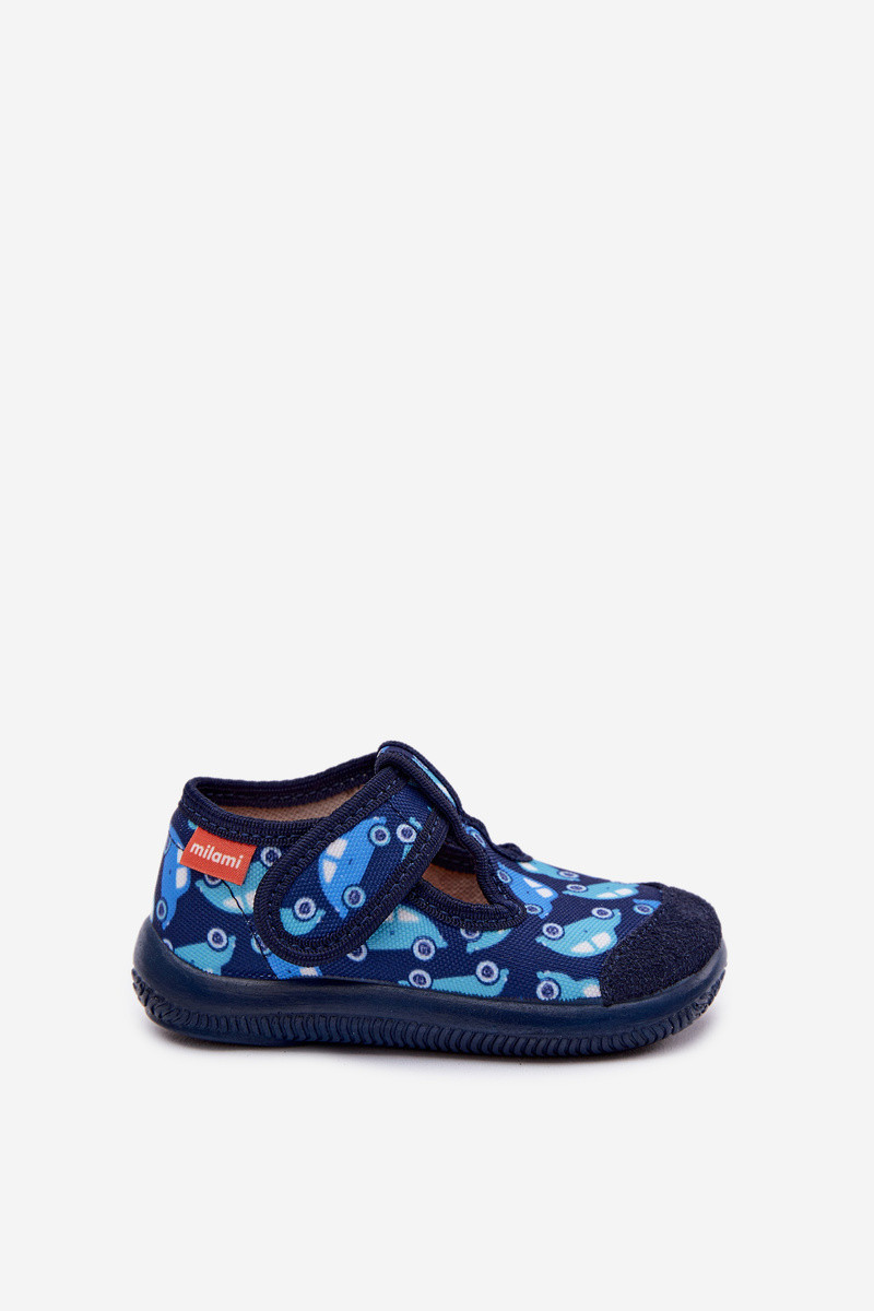 Bērnu elastīgās šlepes ar lipīgiem aizdariem tumši zilā krāsā Ambette