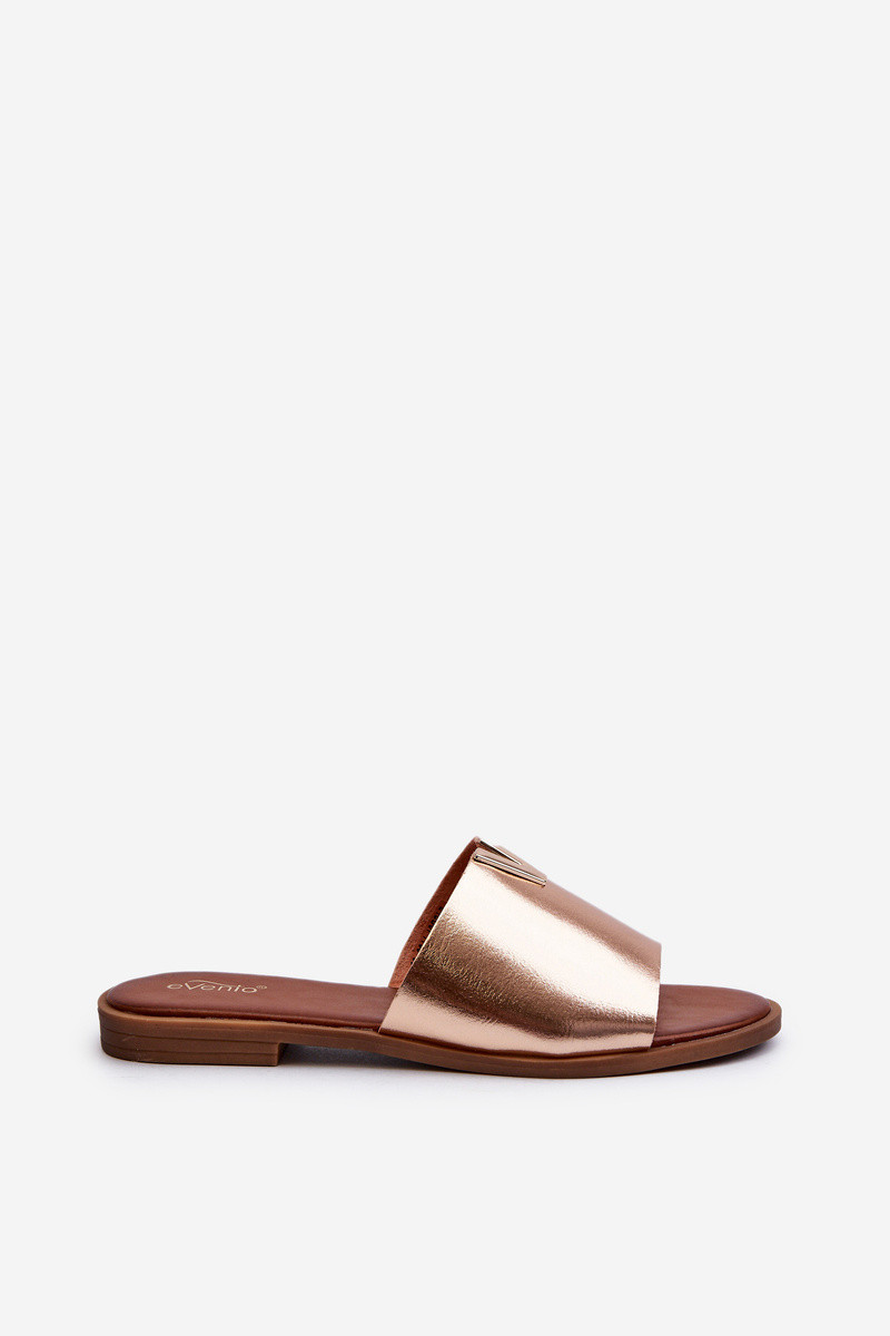 Sieviešu čības no mākslīgās ādas ar platām papēžiem zelta krāsā Tai turiliha