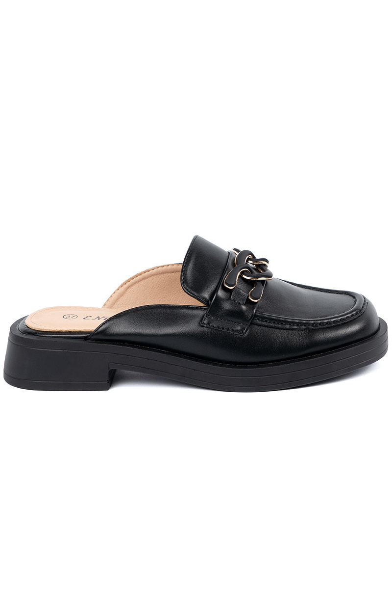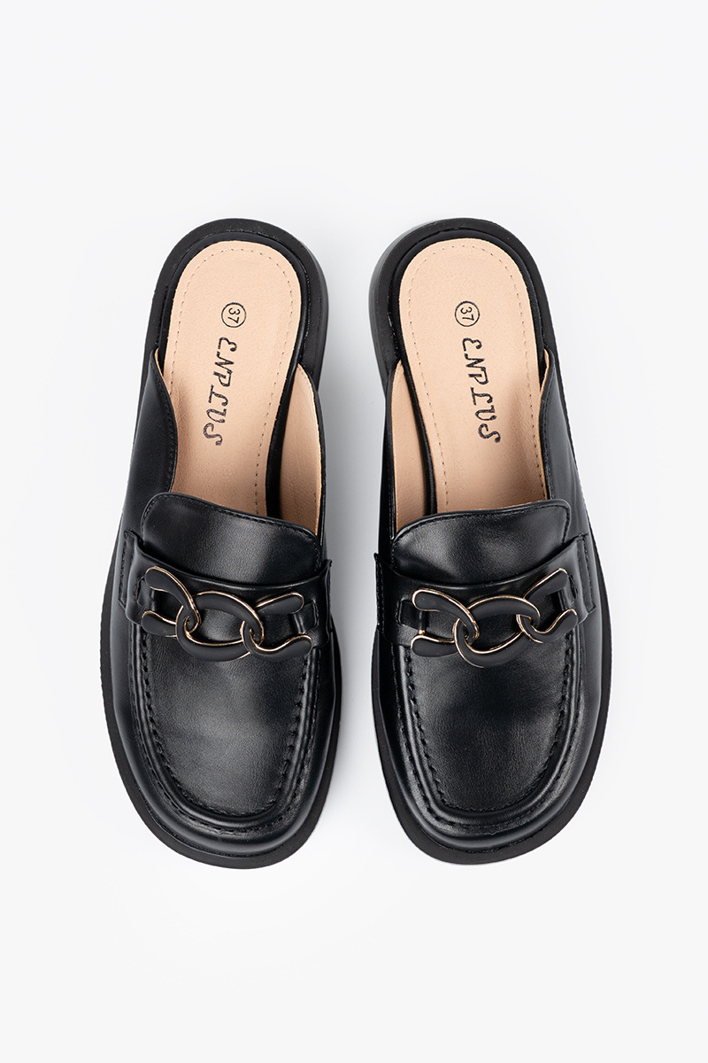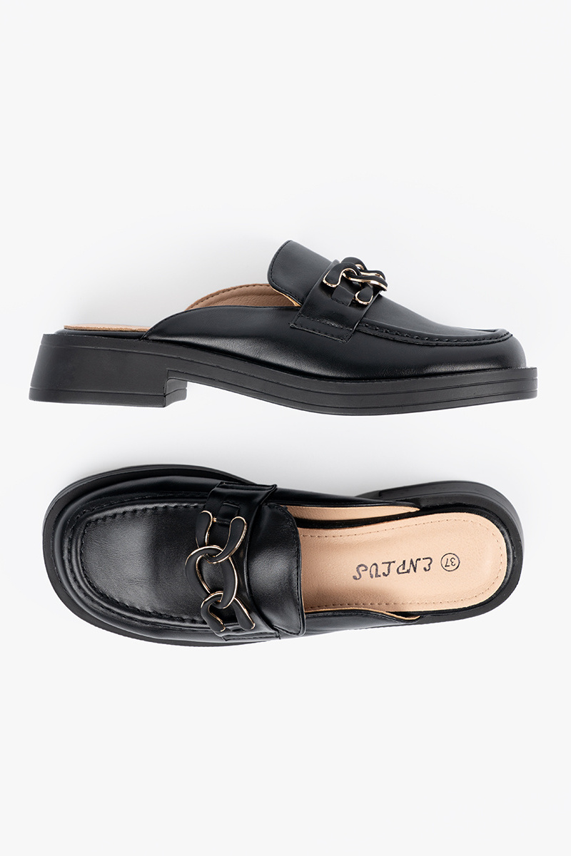 Melni plakanie apavi no mākslīgās ādas uz zemā papēža