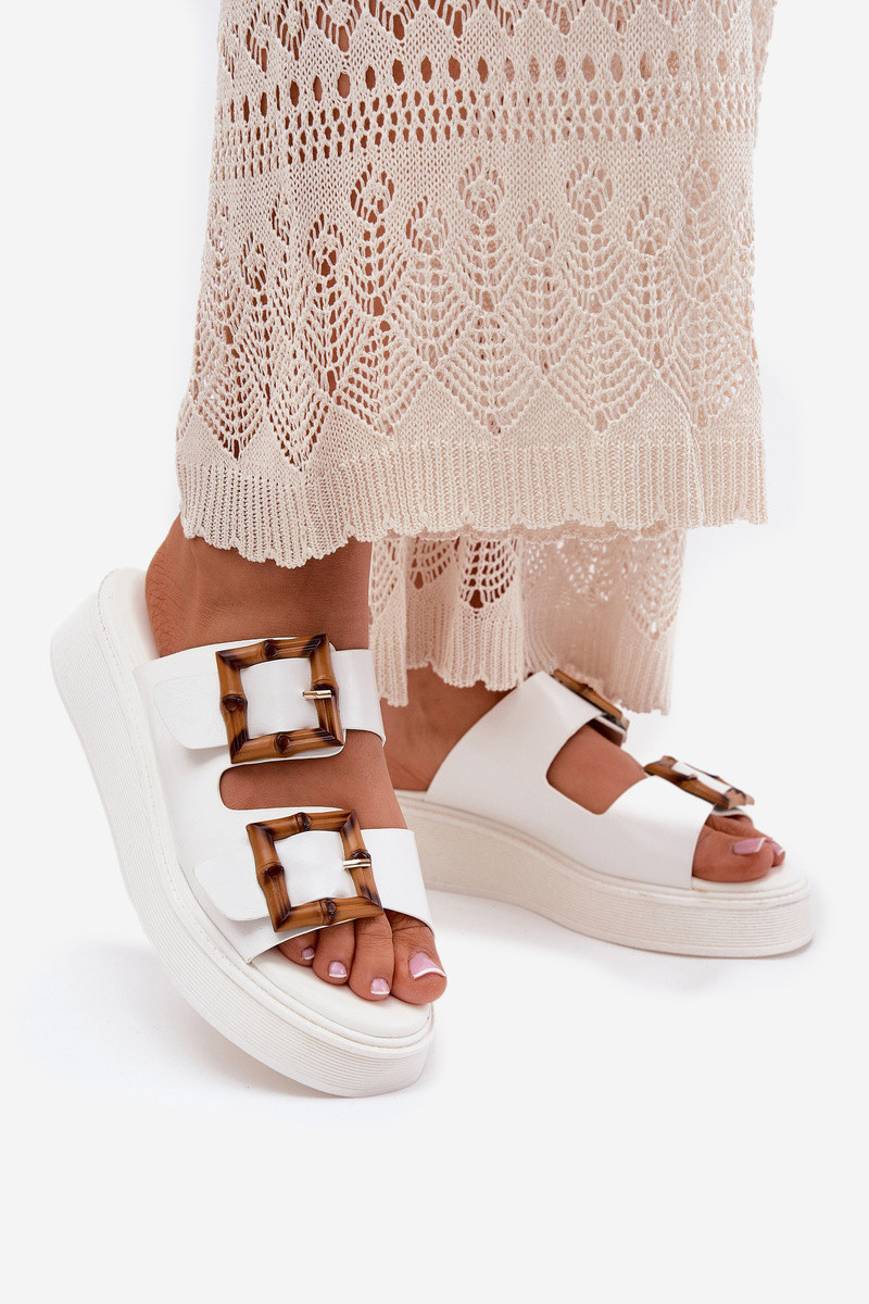 Mākslīgās ādas sieviešu čības ar platformu un sprādzēm Xanivia baltā krāsā