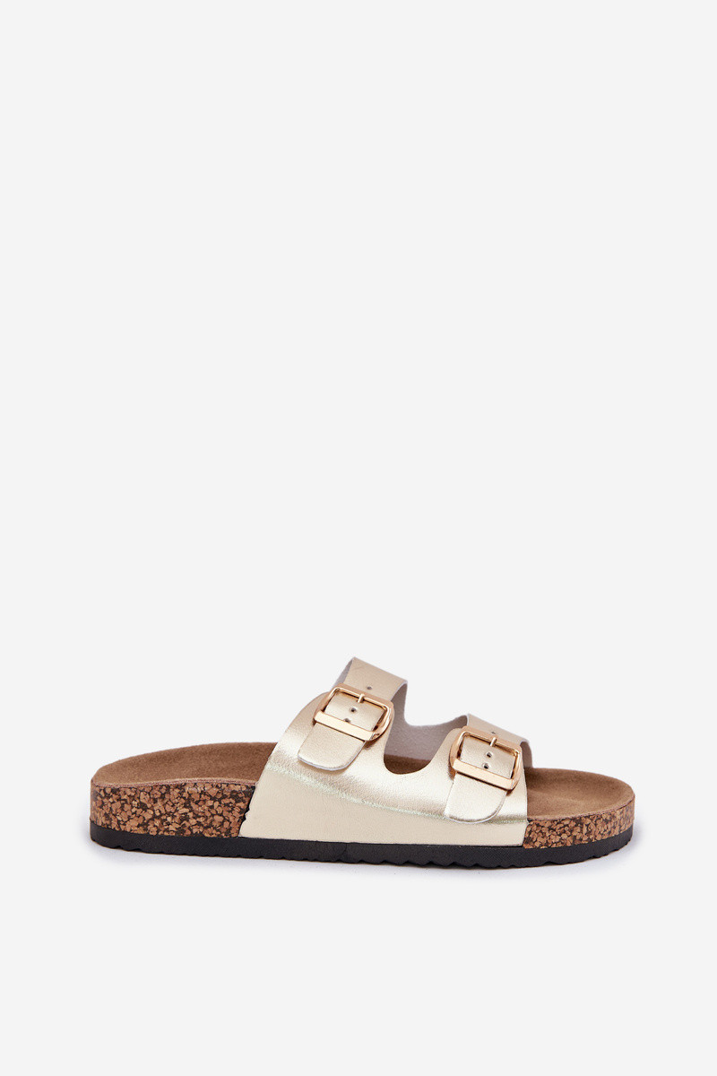 Sieviešu čības ar sprādzēm no mākslīgās ādas zelta krāsā Iskira