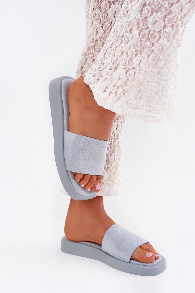 Sieviešu sandelītes ar platformu Z no mākslīgās zamšā gaiši zilos krāsā Jorina