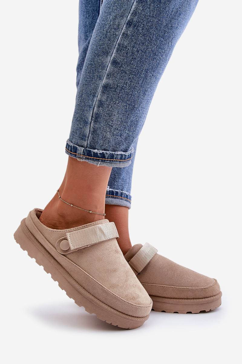 Sieviešu Čības siltināti ar kažokādu ar platformu smilšu krāsas Azida