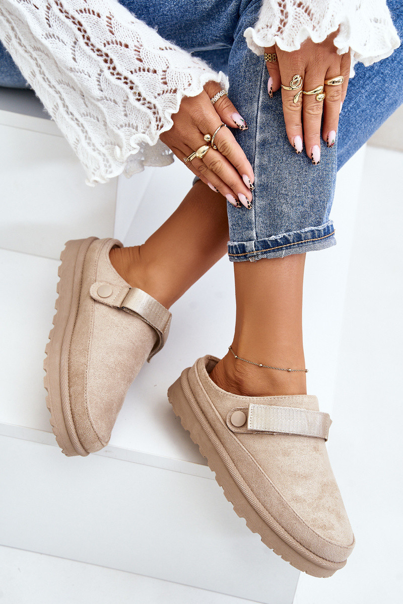Sieviešu siltās čības ar kažoku iekšpusē un platformu smilšu krāsā Azida