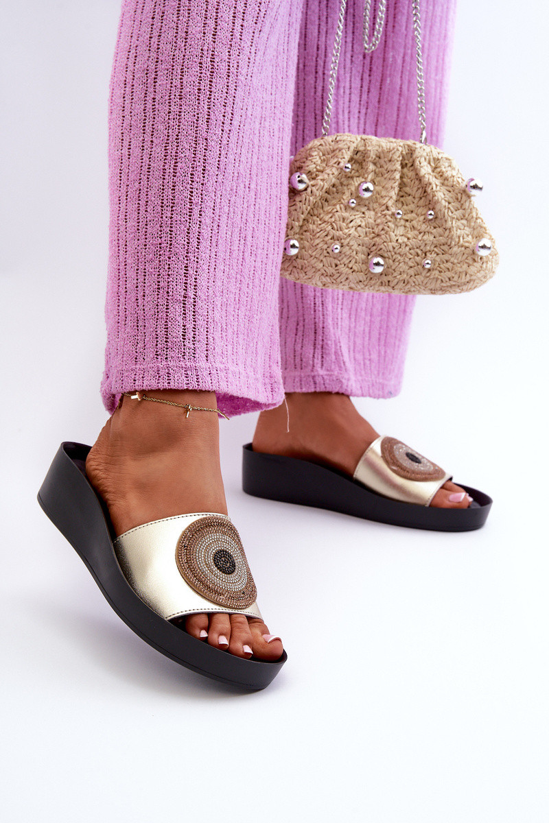 Ādas čības sievietēm ar ornamentiem S.Barski KV27-019 zelta krāsā