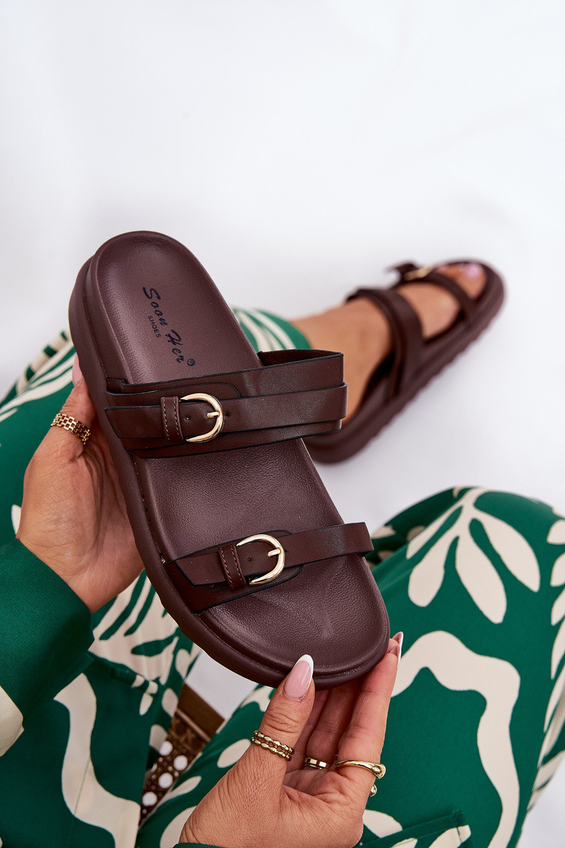 Sieviešu čības ar platformu ar zelta krāsas sprādzēm brūnā krāsā INernone