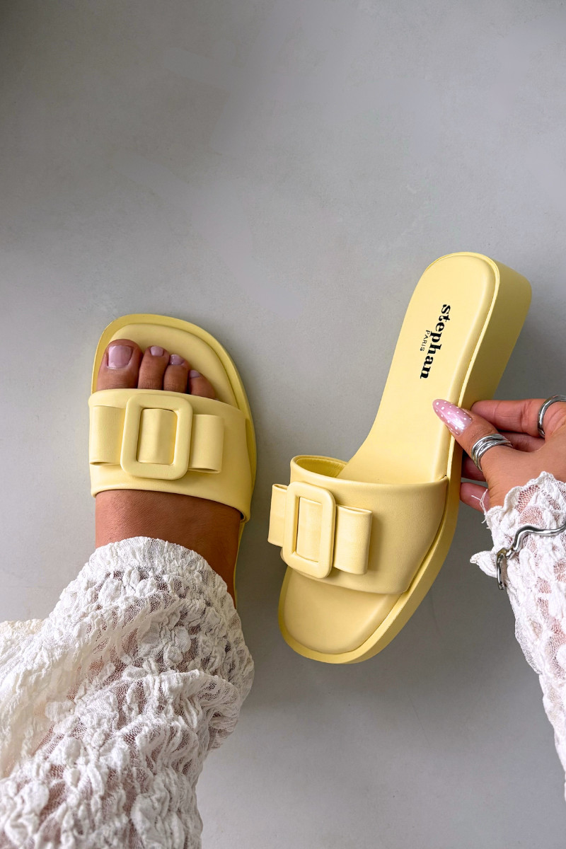 sieviešu čības ar platiem papēžiem ar sprādzēm Dzelteni Melivra