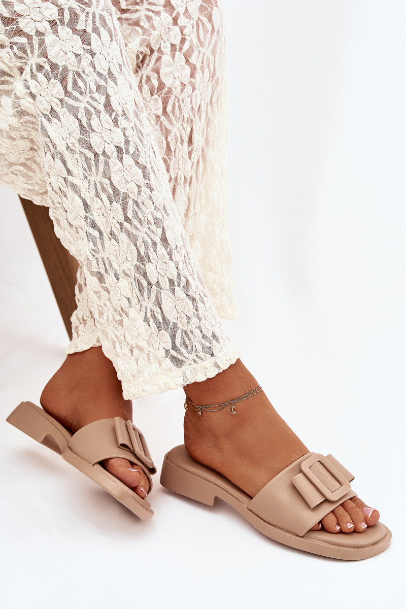 Moteru čības ar platiem papēžiem un sprādzēm smilšu krāsā „Melivra"