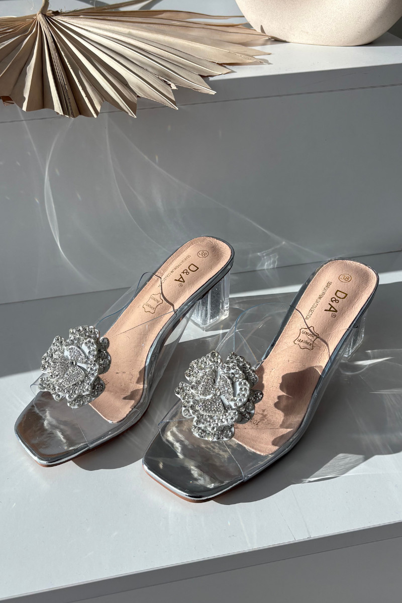 Sudraba krāsas caurspīdīgas čības D&A MR1037-20 ar papēžiem un ornamentiem