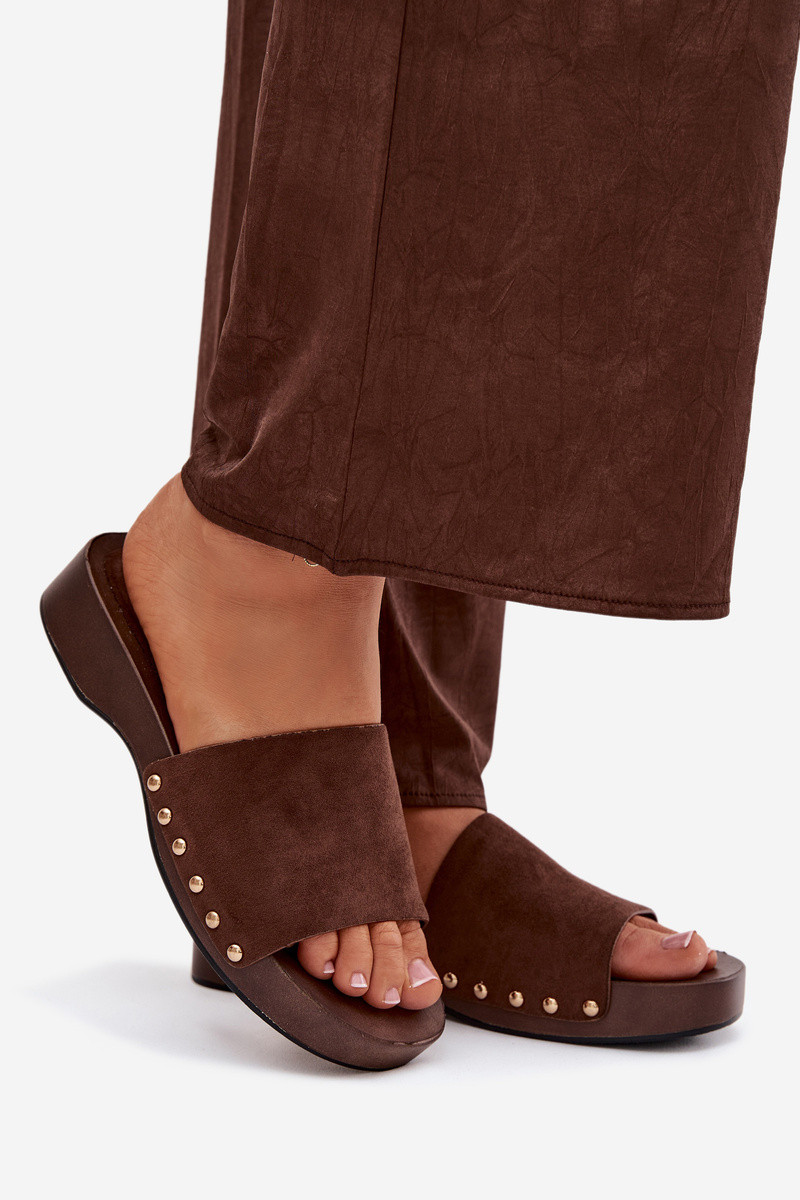 Sieviešu čības ar zelta krāsas dzīsliņām šokolādes krāsā Ferinna